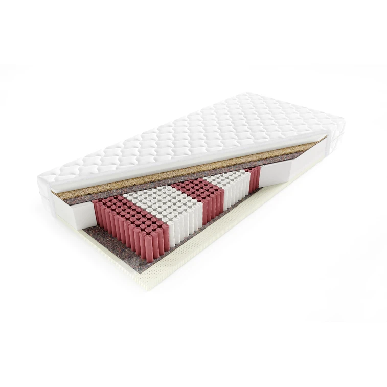 Velmi kvalitní 7 zónová matrace. Na obou stranách pokrytá pěnou. Každá pružina je umístěna v samostatné kapse z textilu. Kokosová vrstva, zpevňuje matraci a zabraňuje jejímu zborcení.