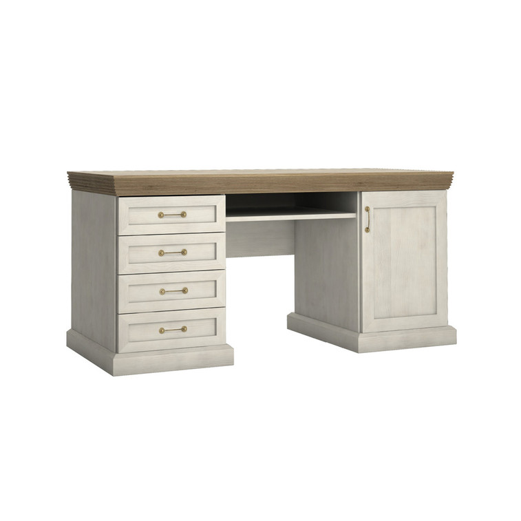 Moderní psací stůl Royal B1 je vytvořen v anglickém stylu. Nábytek je vyroben z velmi kvalitního lamina. Psací stůl zajišťuje výjimečnou funkčnost v kancelářském prostoru. Tento stůl je vybavený 4 zásuvkami, výsuvnou přihrádkou na klávesnici a skříňkou.