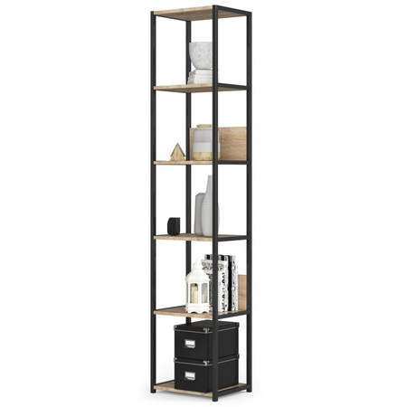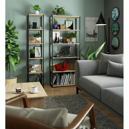 Kovový regál je praktický a moderní. Bude se dobře vyjímat v obývacím pokoji, ale i v kanceláři. Police jsou vyrobeny z laminované desky. Je vyroben z velmi odolného materiálu, který se vyznačuje vysokou odolností proti oděru.