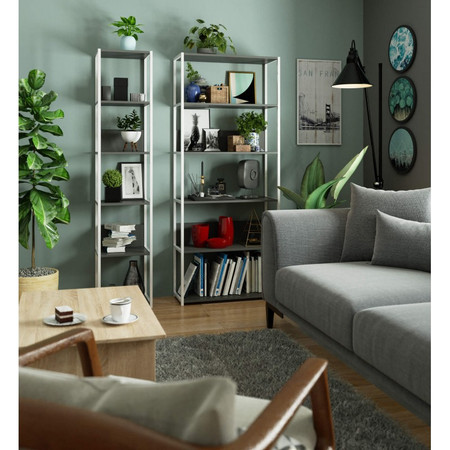 Kovový regál je praktický a moderní. Bude se dobře vyjímat v obývacím pokoji, ale i v kanceláři. Police jsou vyrobeny z laminované desky. Je vyroben z velmi odolného materiálu, který se vyznačuje vysokou odolností proti oděru.