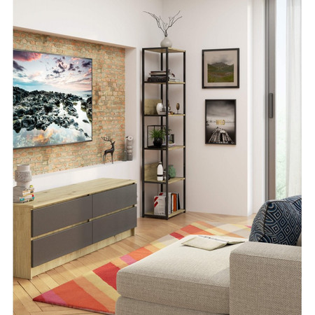 Kovový regál je praktický a moderní. Bude se dobře vyjímat v obývacím pokoji, ale i v kanceláři. Police jsou vyrobeny z laminované desky. Je vyroben z velmi odolného materiálu, který se vyznačuje vysokou odolností proti oděru.