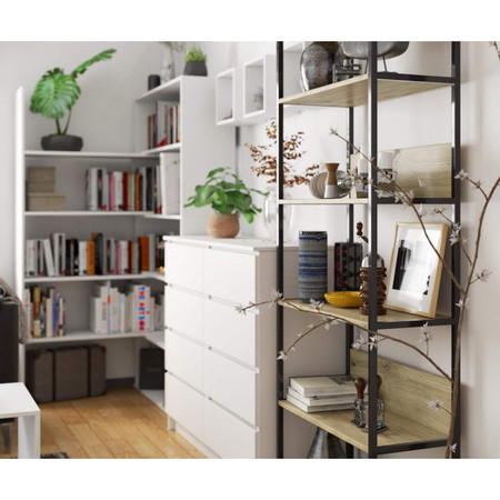 Kovový regál je praktický a moderní. Bude se dobře vyjímat v obývacím pokoji, ale i v kanceláři. Police jsou vyrobeny z laminované desky. Je vyroben z velmi odolného materiálu, který se vyznačuje vysokou odolností proti oděru.