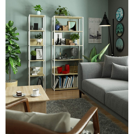 Kovový regál je praktický a moderní. Bude se dobře vyjímat v obývacím pokoji, ale i v kanceláři. Police jsou vyrobeny z laminované desky. Je vyroben z velmi odolného materiálu, který se vyznačuje vysokou odolností proti oděru.