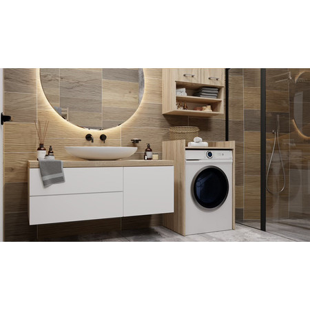 Volně stojící koupelnový regál je namontovaný na pračce a je perfektním řešením do malých prostor, kde můžete ještě lépe využít prostor. Police dobře poslouží na odložení ručníků, kosmetiky a dalších koupelnových doplňků.