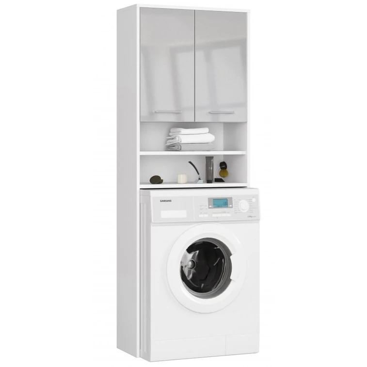 Regál nad pračku FIN. V každé koupelně se najdou věci, které potřebují svůj prostor. Koupelnová skříňka nezabere moc prostoru a pomůže vám věci v koupelně zorganizovat. Univerzální design splňuje očekávání všech těch, kteří mají rádi kombinaci jednoduchosti a elegance. Minimalistické rukojeti zajišťují pohodlný přístup k obsahu skříňky.