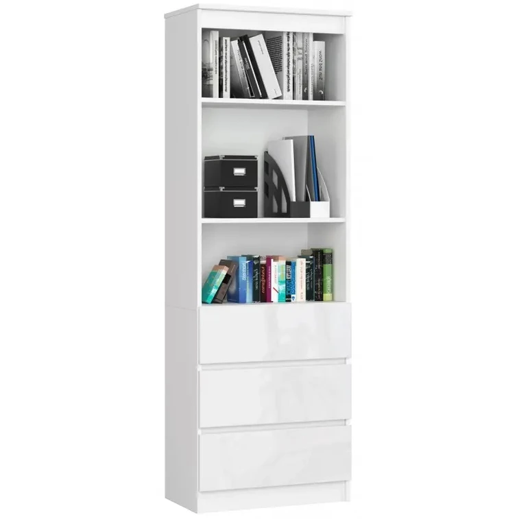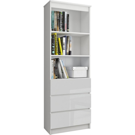 Regál R 60cm CLP 3 zásuvky 2 poličky bílý lesk.