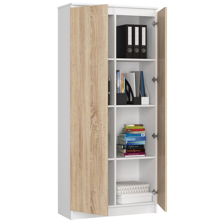 Regál R 80 cm CLP 2 dvířka 8 poliček bílá/dub sonoma