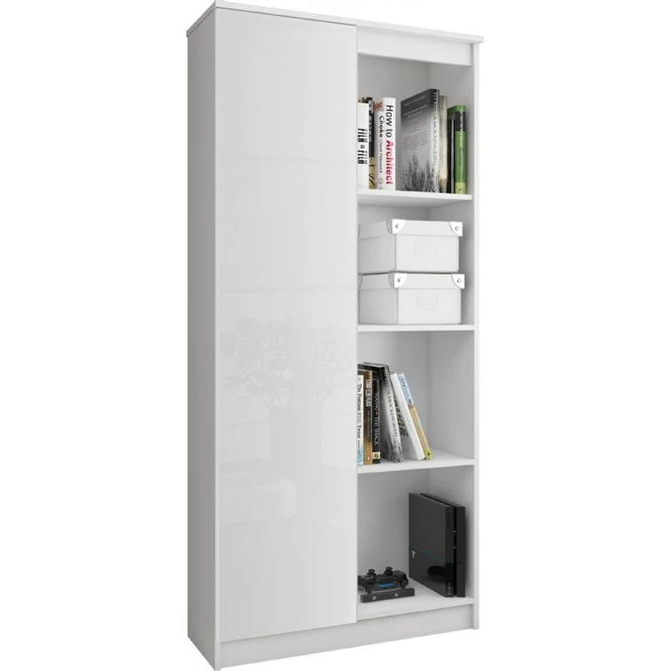 Regál R 80cm CLP 1 dvířka 6 poliček bílý lesk