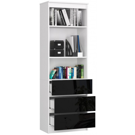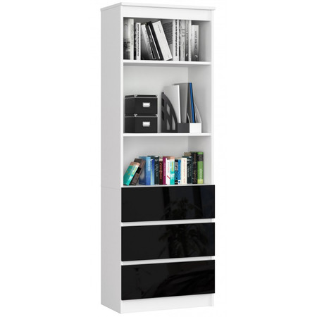 Regál R60 3SZ2P černý lesk bílá