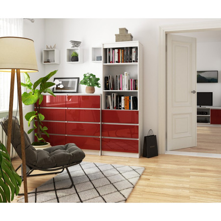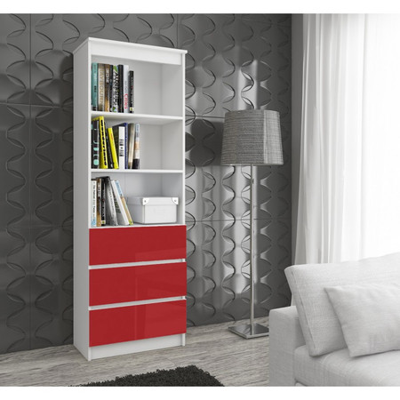 Regál R60 3SZ2P červený lesk bílá