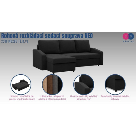 Rohová rozkládací sedací souprava NEO - zkosený bok - model 2