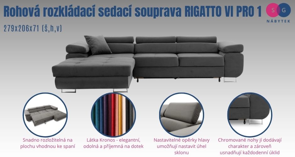 Rohová rozkládací sedací souprava RIGATTO VI PRO 1.