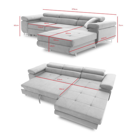 Rohová rozkládací sedací souprava RIGATTO VI PRO 1. Poslouží jako prostorné místo pro pohodlný odpočinek. Snadno ji rozložíte a užijete si velkou plochu vhodnou na spaní.