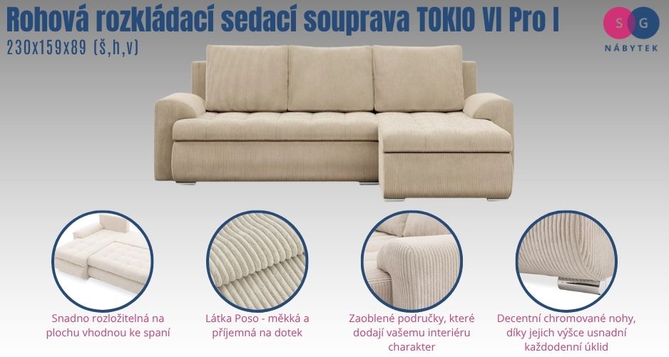 Rohová rozkládací sedací souprava TOKIO V PRO I.