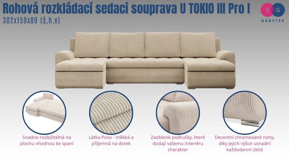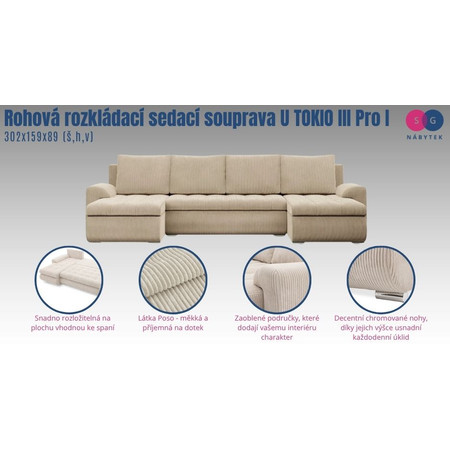Rohová rozkládací sedací souprava U TOKIO III Pro I.