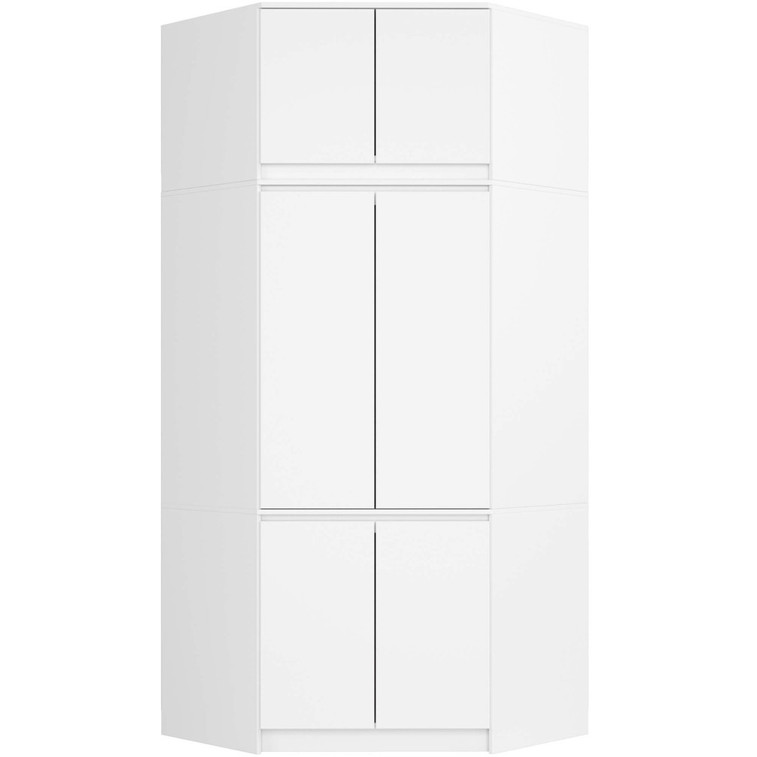 Rohová šatní skříň s nástavbou S100 - bílá.