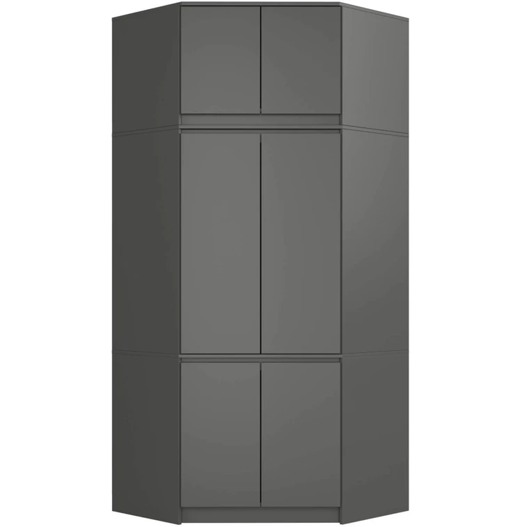 Rohová šatní skříň s nástavbou S100 - šedá.