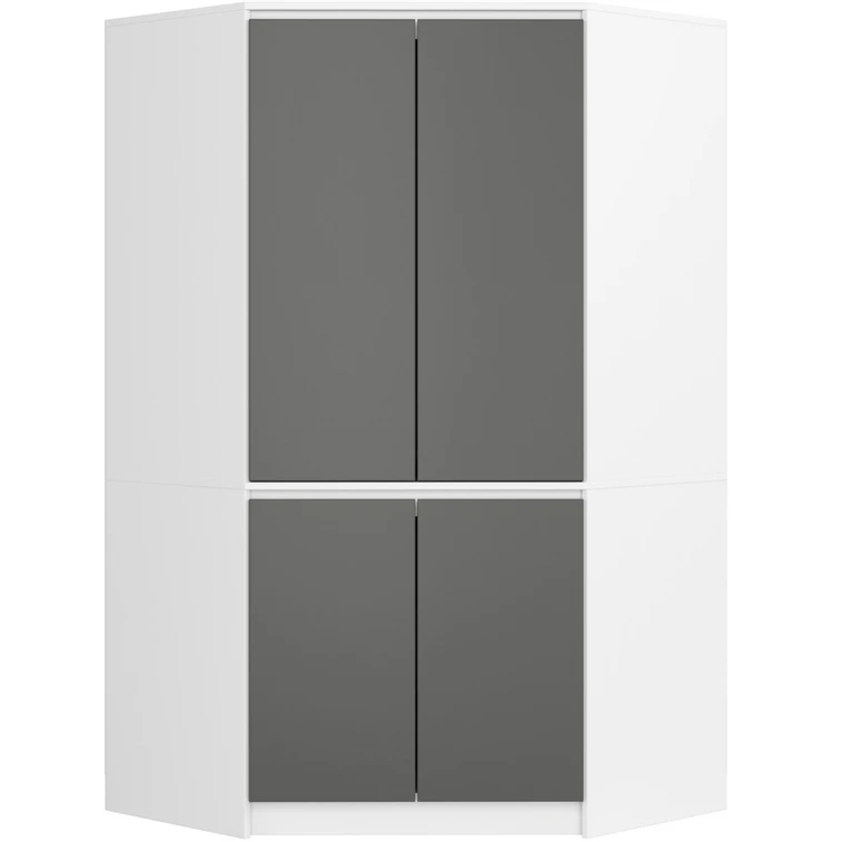 Rohová šatní skříň S100 4D CLP - bílá/šedá.