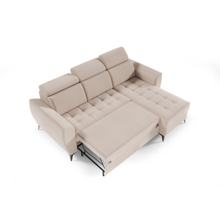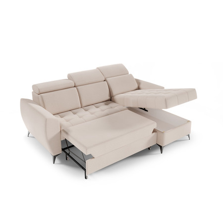 Pevná konstrukce ze dřeva a OSB desky. Potah z kvalitní látky Element v moderních barevných odstínech. Snadné rozkládání pohovky na lůžkovou podobu. Moderní skandinávský design vhodný do všech současných interiérů. Součástí pohovky je úložný prostor.