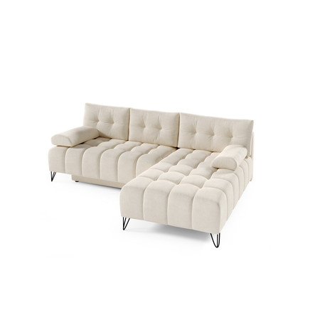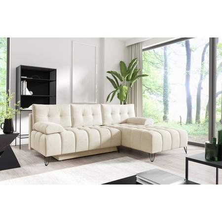 Pevná konstrukce ze dřeva a OSB desky. Potah z kvalitní látky Element v moderních barevných odstínech. Snadné rozkládání pohovky na lůžkovou podobu. Moderní skandinávský design vhodný do všech současných interiérů. Součástí pohovky je úložný prostor.