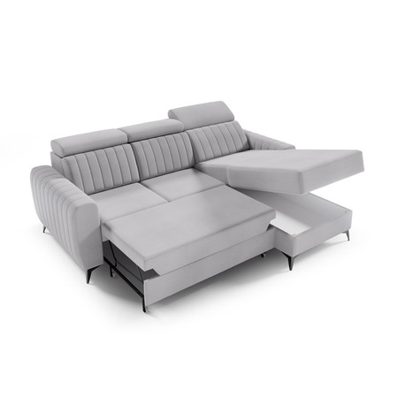 Pevná konstrukce ze dřeva a OSB desky. Potah z kvalitní látky Element v moderních barevných odstínech. Snadné rozkládání pohovky na lůžkovou podobu. Moderní skandinávský design vhodný do všech současných interiérů. Součástí pohovky je úložný prostor.