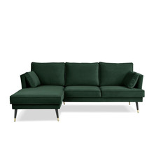Rohová sedací souprava Falco. Pevná konstrukce ze dřeva a OSB desky. Potah z kvalitní látky Velur, příjemné na dotek. Je k dispozici v několika originálních barvách, včetně lahvově zelené, tmavě modré nebo práškově růžové. Sedací soupravy z kolekce FALCO jsou jednoduché, mají výrazné tvary, pohodlná sedadla a opěradla zakončená vysokými dřevěnými nohami. Moderní design vhodný do všech současných interiérů.