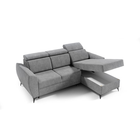 Pevná konstrukce ze dřeva a OSB desky. Potah z kvalitní látky Sally v moderních barevných odstínech. Snadné rozkládání pohovky na lůžkovou podobu. Moderní skandinávský design vhodný do všech současných interiérů. Součástí pohovky je úložný prostor.