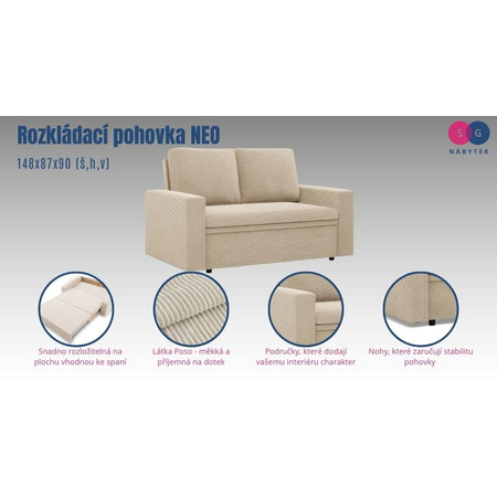 Rozkládací pohovka NEO - rovný bok - Poso.