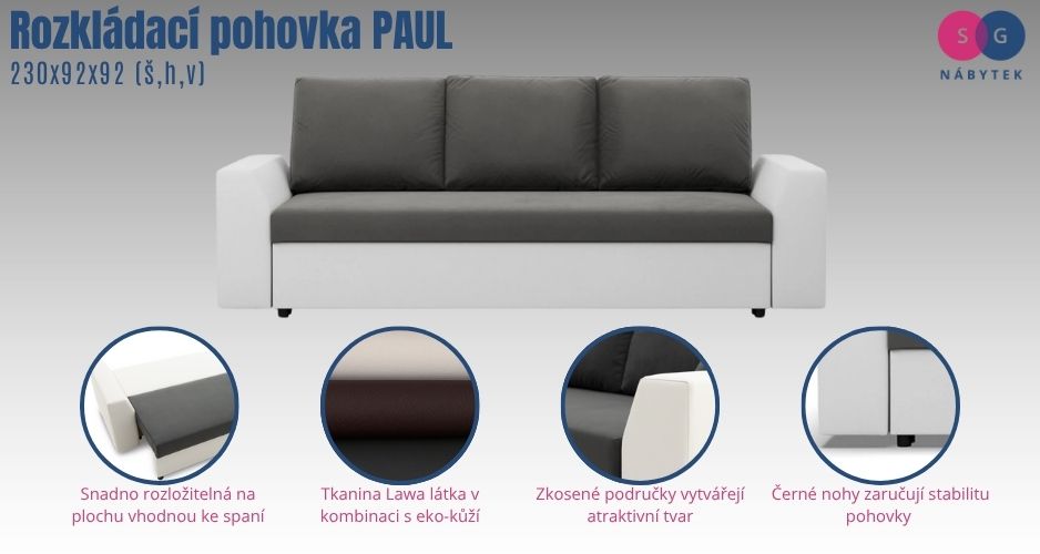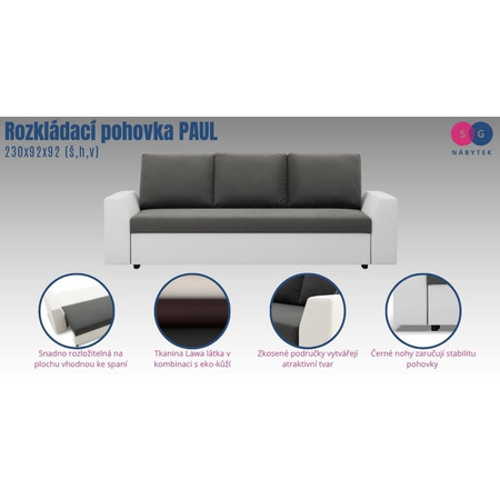 Rozkládací pohovka PAUL látka v kombinaci s eko-kůží