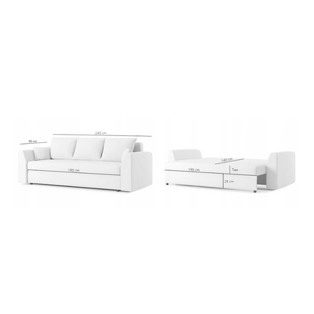 Pevná konstrukce ze dřeva a OSB desky. Potah z kvalitní látky MICRO v mnoha moderních barevných odstínech. Snadné rozkládání pohovky na lůžkovou podobu. Moderní design vhodný do všech současných interiérů.
