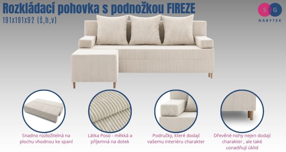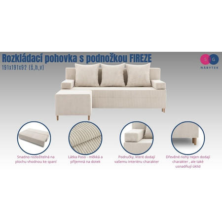 Rozkládací pohovka s podnožkou FIREZE - poso
