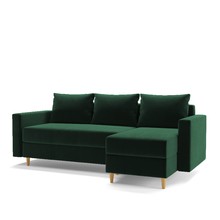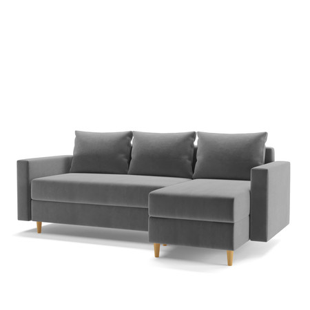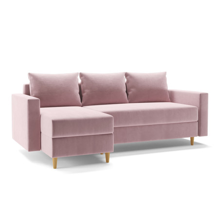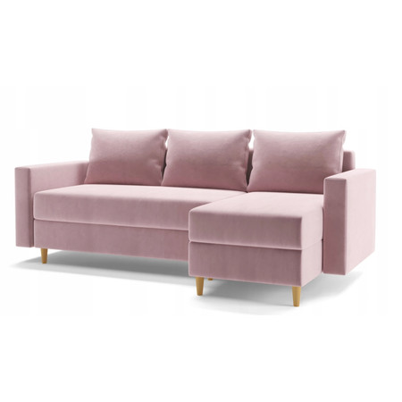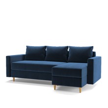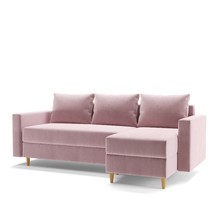 Rohová rozkládací pohovka Rio je dostupná v zajímavých barvách a dřevěné nohy odkazují na skandinávský styl.