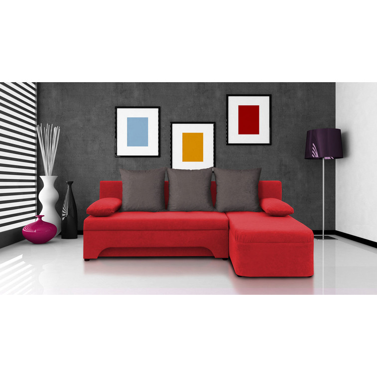 Rozkládací rohová sedačka VALERIE Červená Tmavě hnědá