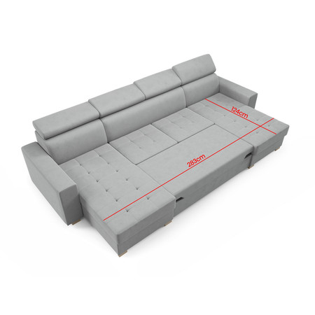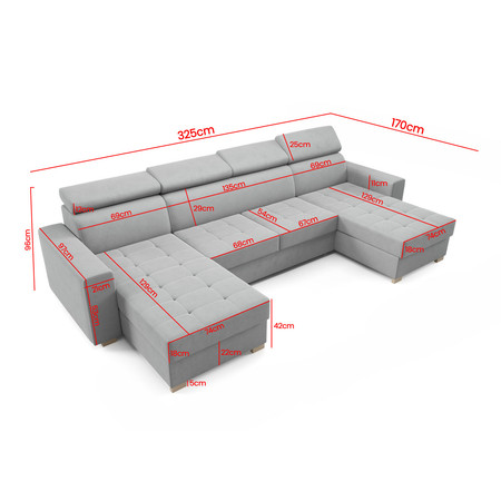 Pevná konstrukce ze dřeva a OSB desky. Snadné rozkládání sedací soupravy na lůžkovou podobu. Moderní design vhodný do všech současných interiérů. Nastavitelné opěrky hlavy.