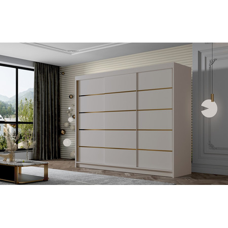 Posuvná šatní skříň Amber VII kombinuje klasickou jednoduchost a moderní design. Je ideální jako šatní skříň do předsíně nebo místo pro uložení oblečení v ložnici nebo jiných drobností každodenní potřeby.