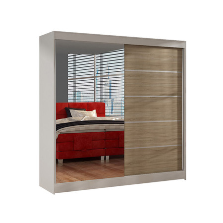 Šatní skříň BASTI III šířka 200 cm - bílá/dub sonoma