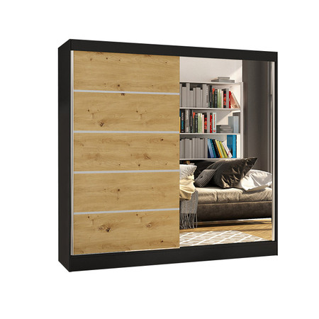 Šatní skříň BASTI III šířka 200 cm - černá/dub artisan