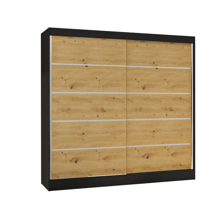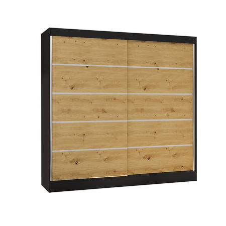 Šatní skříň BASTI IV šířka 200 cm - černá/dub artisan
