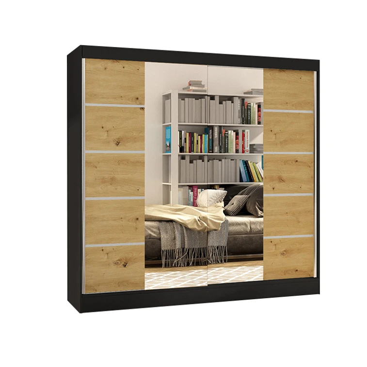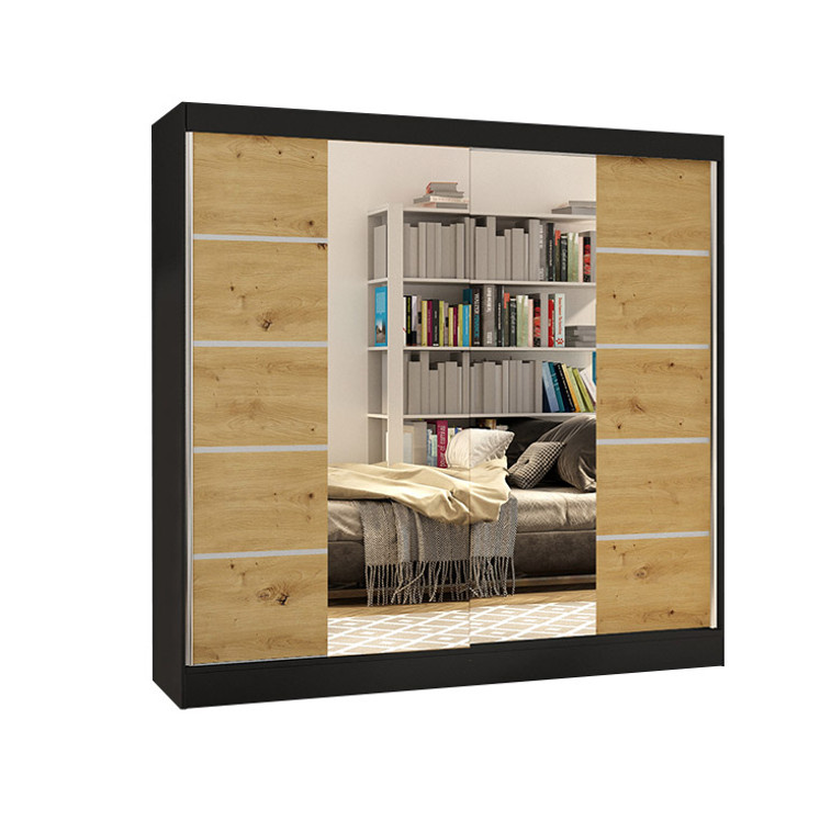 Šatní skříň BASTI V šířka 200 cm - černá/dub artisan