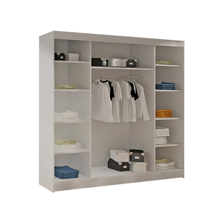 Šatní skříň Basti X je vyrobena v moderním designu a nabízí velké množství praktického úložného prostoru. Neocenitelný je systém trendových posuvných dveří, které usnadňují manipulaci a šetří prostor v interiéru.