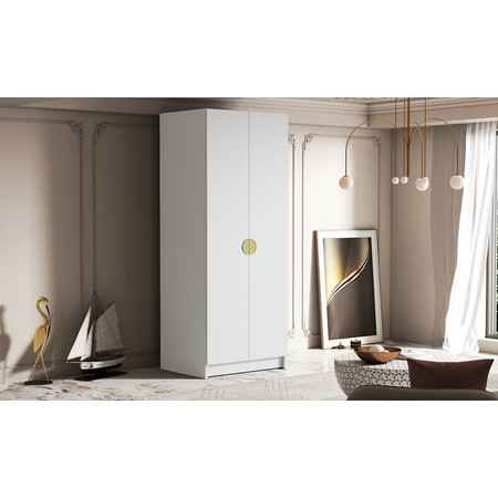 Šatní skříň BOSTON 100 cm - bílá/zlaté úchytky