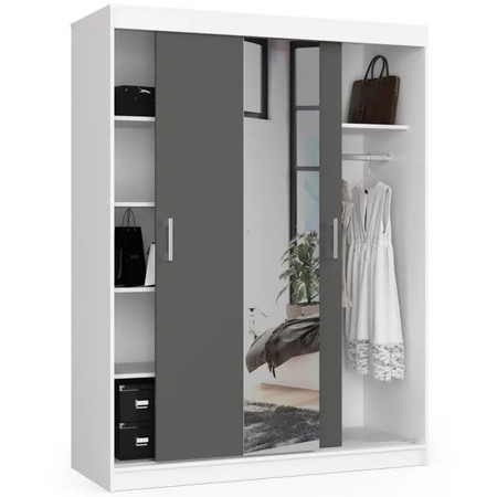 Šatní skříň CLP 150 cm posuvná se zrcadlem - bílá/grafit
