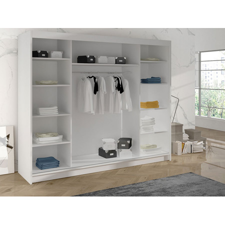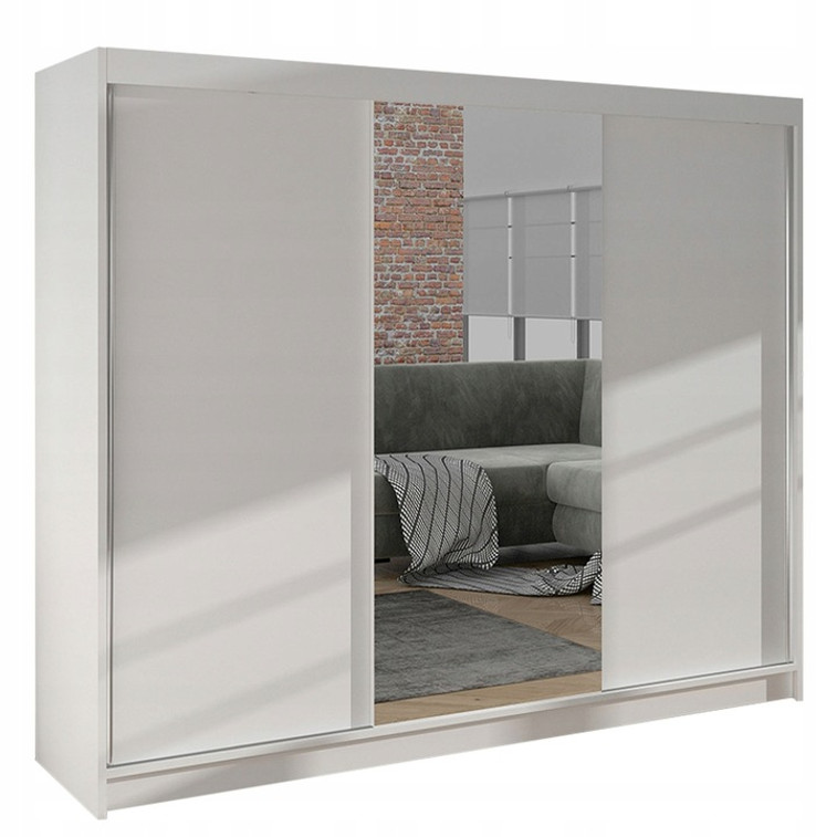 Šatní skříň Derby I je vyrobena v moderním designu a nabízí velké množství praktického úložného prostoru. Neocenitelný je systém trendových posuvných dveří se zrcadlem, které usnadňují manipulaci a šetří prostor v interiéru.