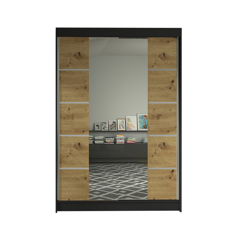 Šatní skříň LINO V šířka 120 cm - černá/dub artisan