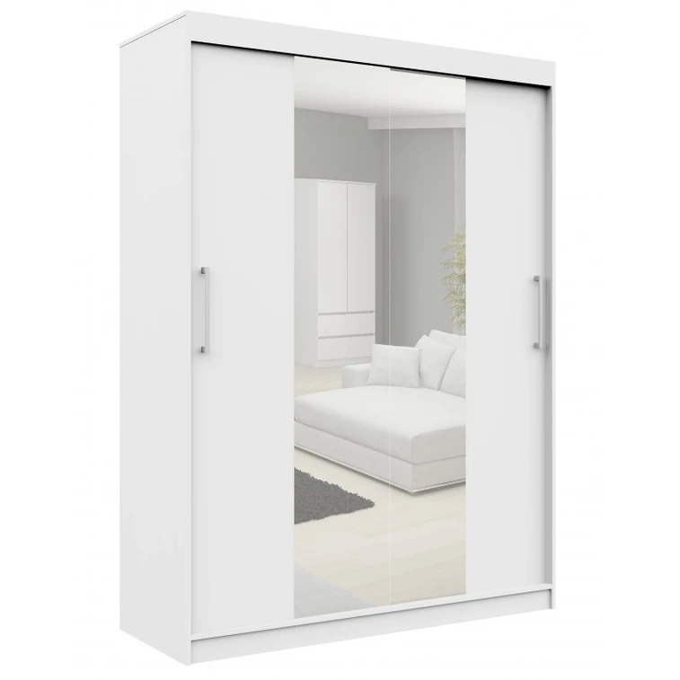 Šatní skříň posuvná 150cm CLP se zrcadlem bílá