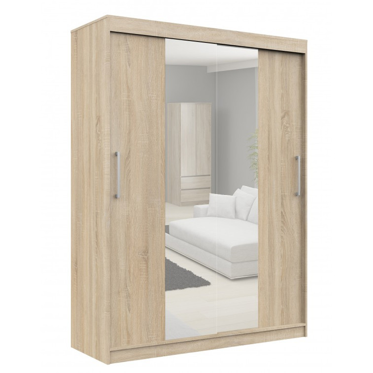 Šatní skříň posuvná 150cm CLP se zrcadlem dub sonoma