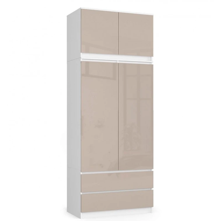 Šatní skříň s nadstavbou S90 2 dvířka 2 zásuvky bílá/cappuccino lesk