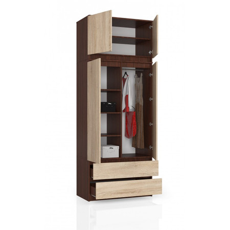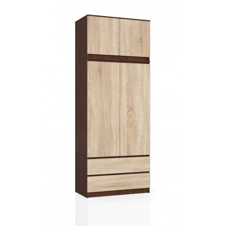 Šatní skříň s nadstavbou S90 2 dvířka 2 zásuvky wenge/dub sonoma