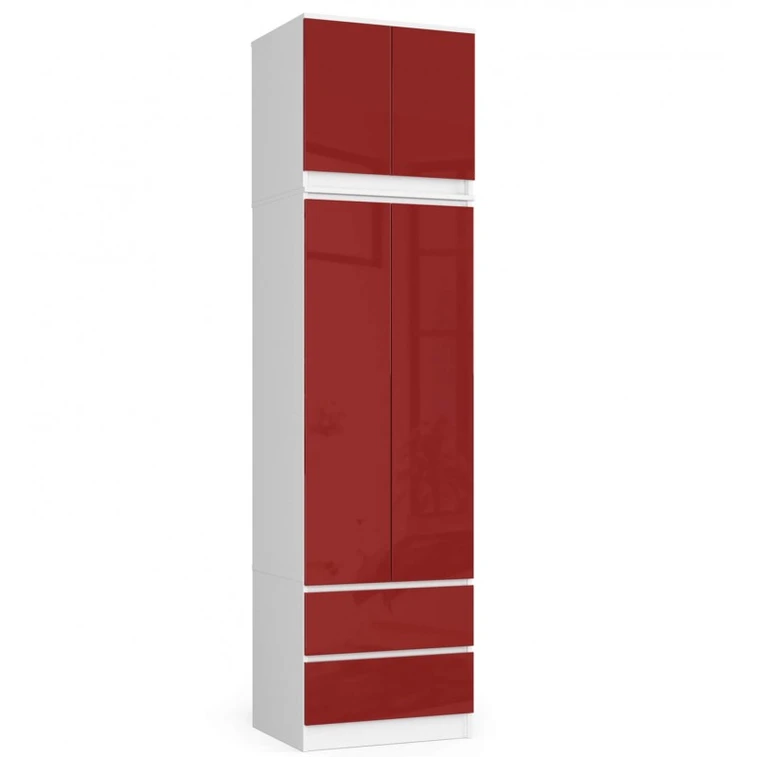 Šatní skříň s nástavbou S60 2D 2SZ CLP, bílá/červený lesk.