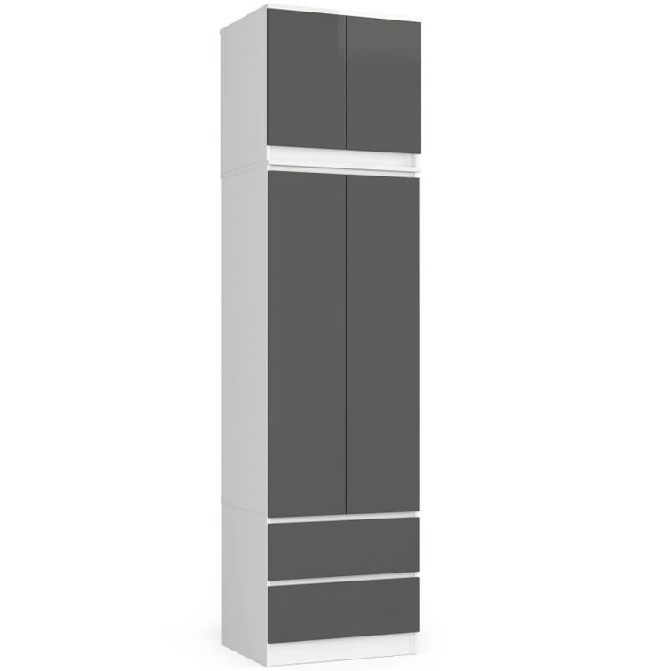 Šatní skříň s nástavbou S60 2D 2SZ CLP, bílá/šedá.
